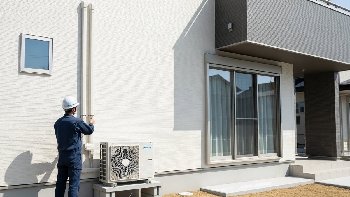 2階の室内機に対して室外機を1階に設置する「立ちおろし」工法は、見た目がスッキリする一方で、配管が長くなることによる影響を強く受けます。工事費の増加、電気代への影響、そして将来のメンテナンス性の3点において、標準的な設置方法とは異なる課題が生じるため、事前にそれらを把握しておくことが失敗を防ぐ鍵となります。